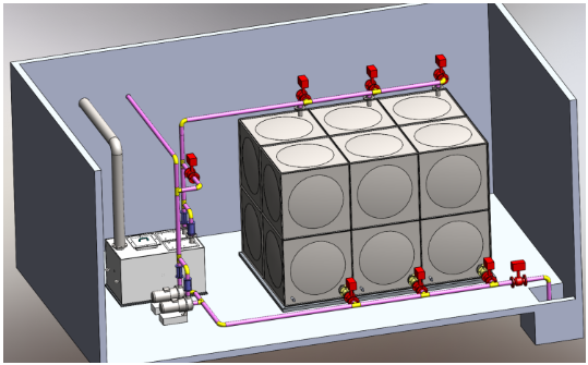 结合项目实际情况以及施工经验,我们选择间歇式并联衰变池结构,池体采用不锈钢材质罐体。同时为了缩小衰变池空间,将长半衰期I-131废水和短半衰期F-18,Tc-99m分开处理。